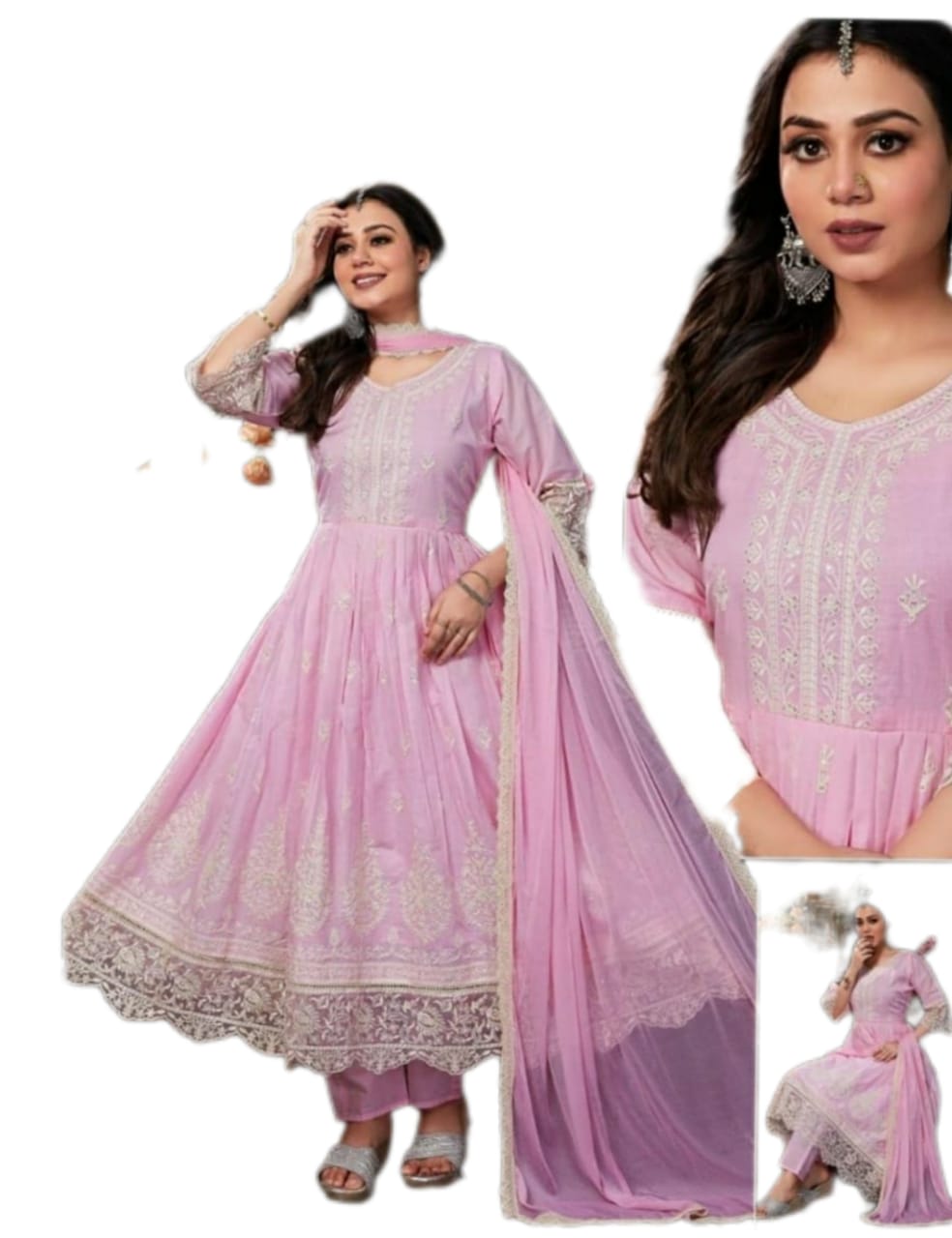 Soft cotton suit with heavy lace work Baby pink Size XL