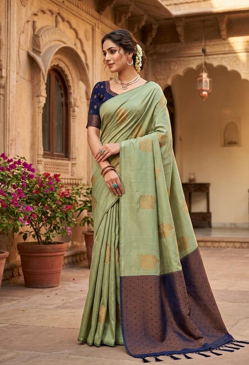 Premium silk saree Navyblue green