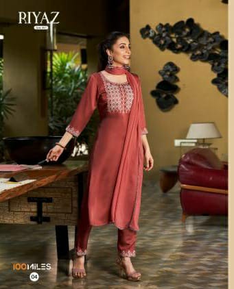 Fancy silk suit with embroidery -M -Peach