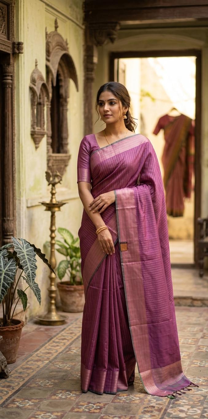 Zari woven stripe design soft silk saree Mauve-Majenta
