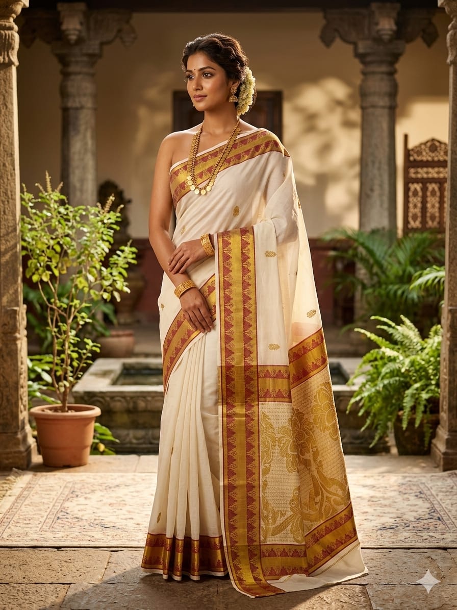 Zari woven premium Kerala cotton saree