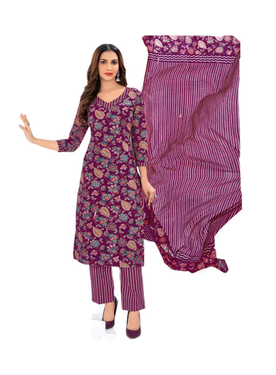 Pure cotton printed suit Wine