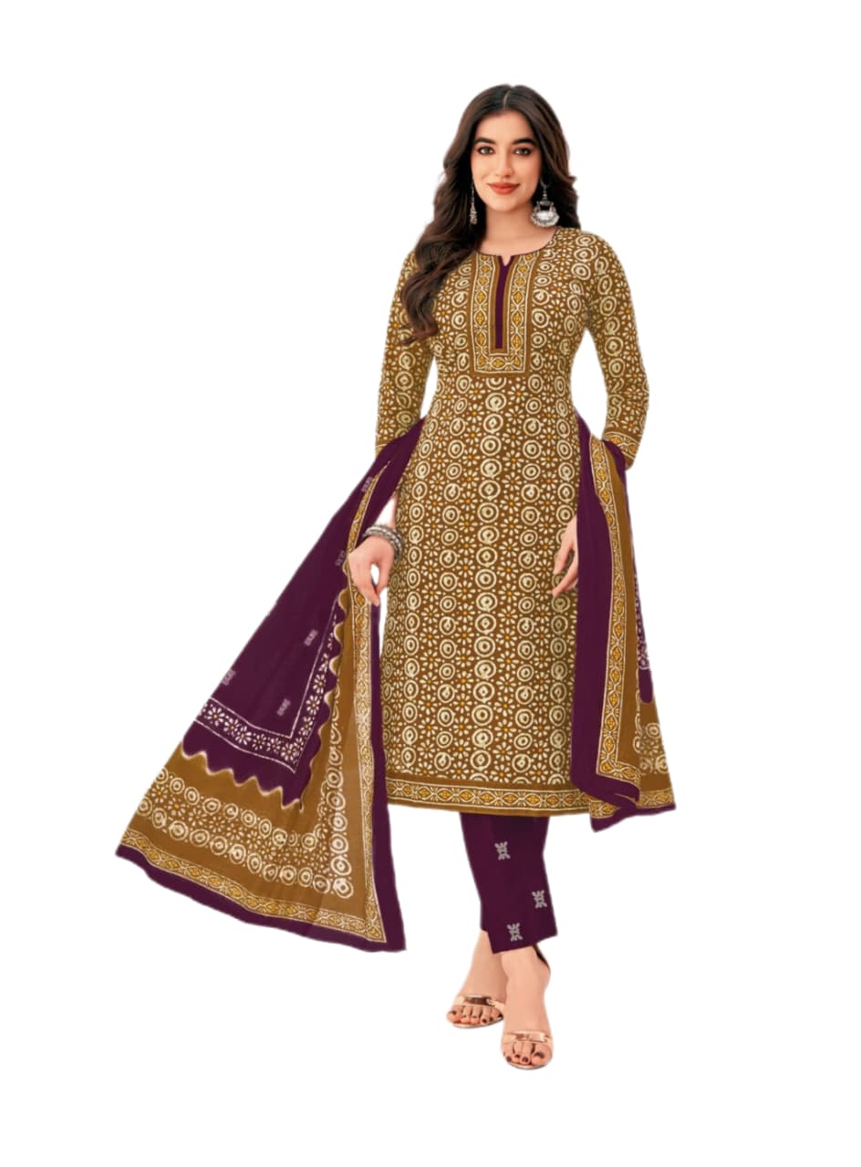 Pure cotton printed suit Mehendi Green Purple