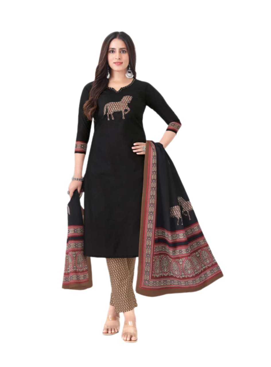 Cotton suit with katha work and mul cotton duppatta Black Green