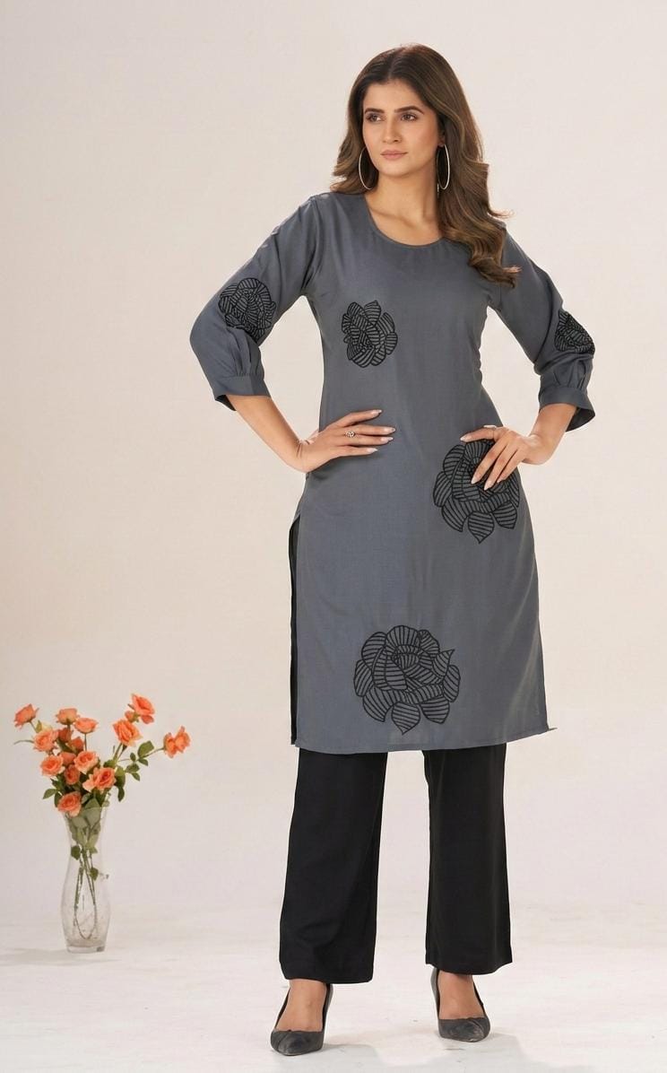 Embroidered rayon Kurta Size 3XL Grey