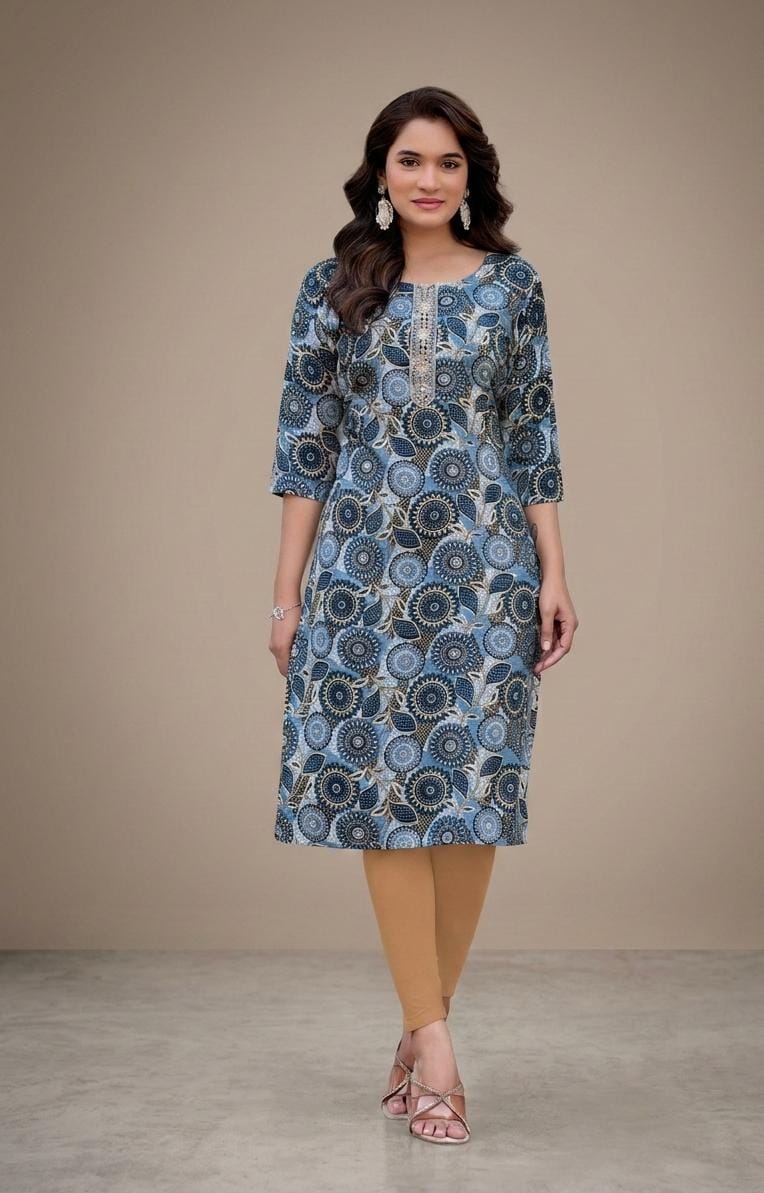 Foil printed Rayon Kurta Size 3XL Grey