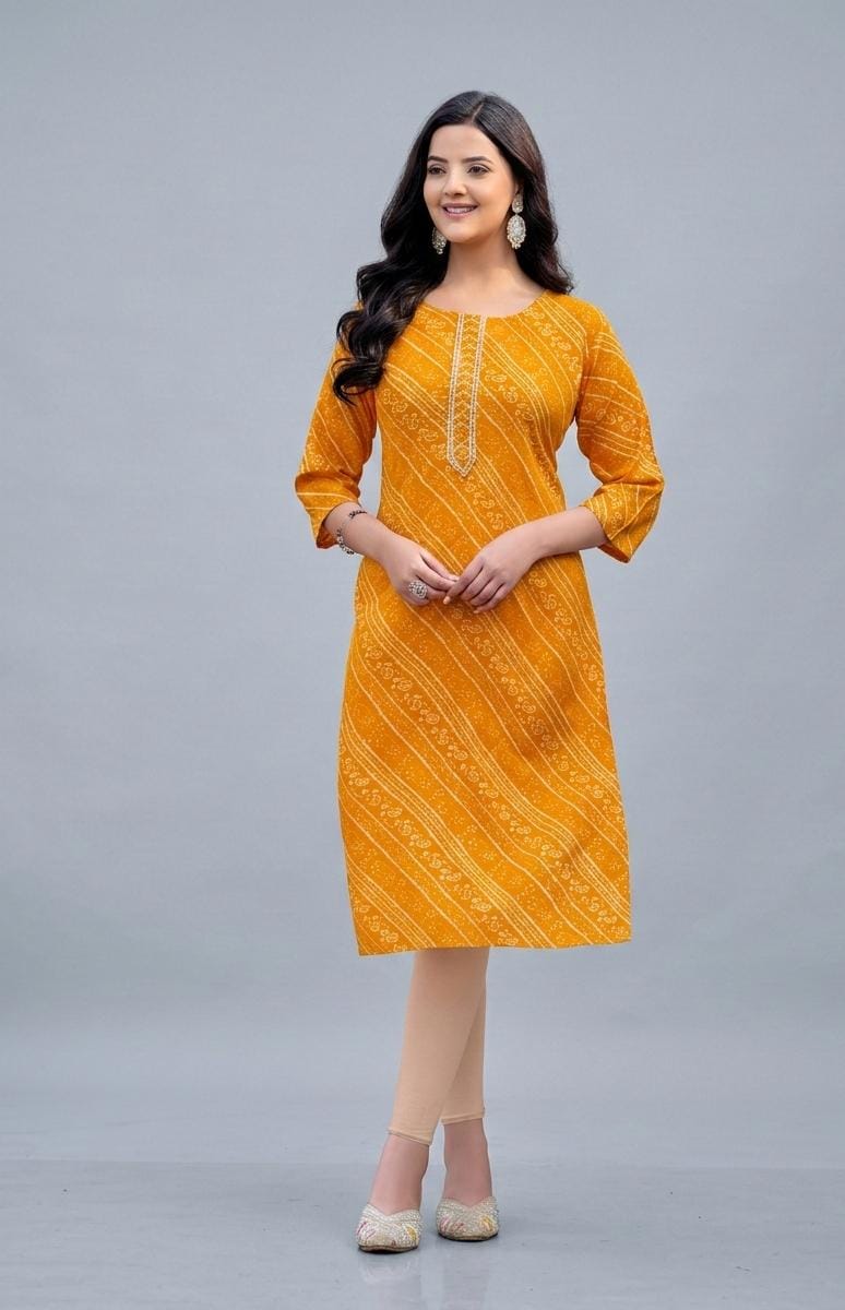 Foil printed Rayon Kurta Size 4XL Yellow