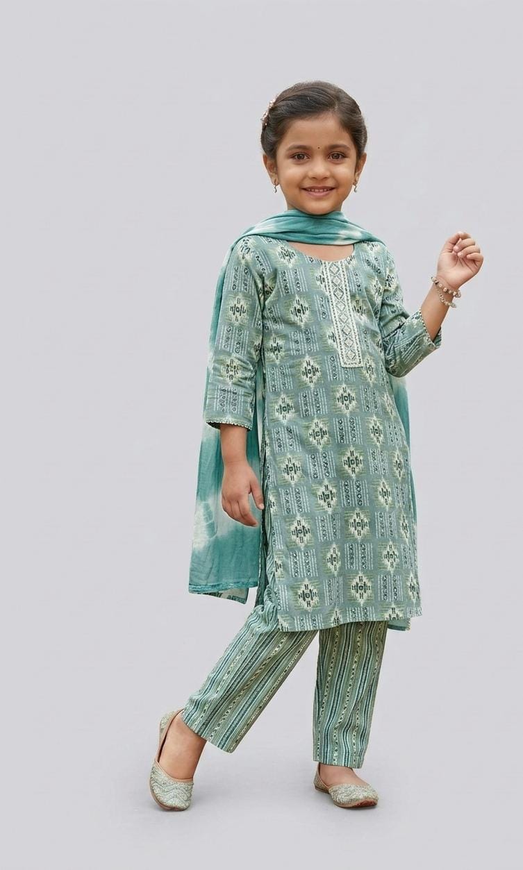 Foil printed rayon suit for kids Size 18 Slate Blue