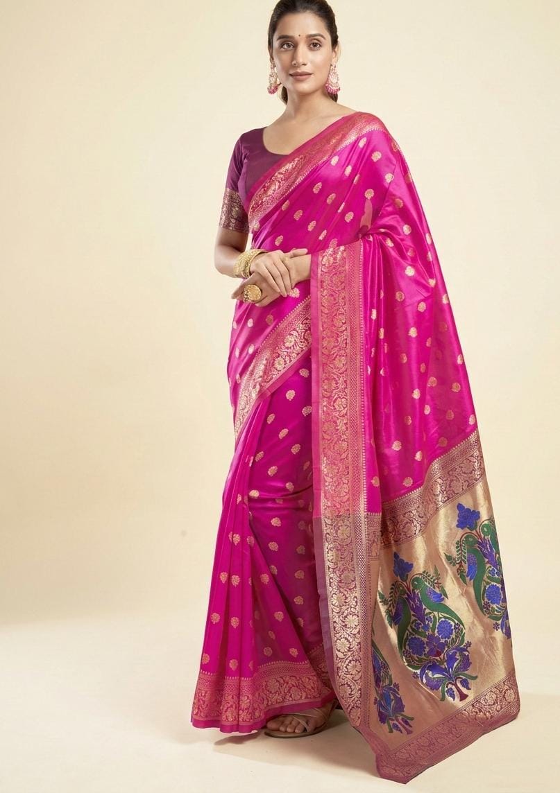 Zari woven art silk saree with matching Blouse Pink