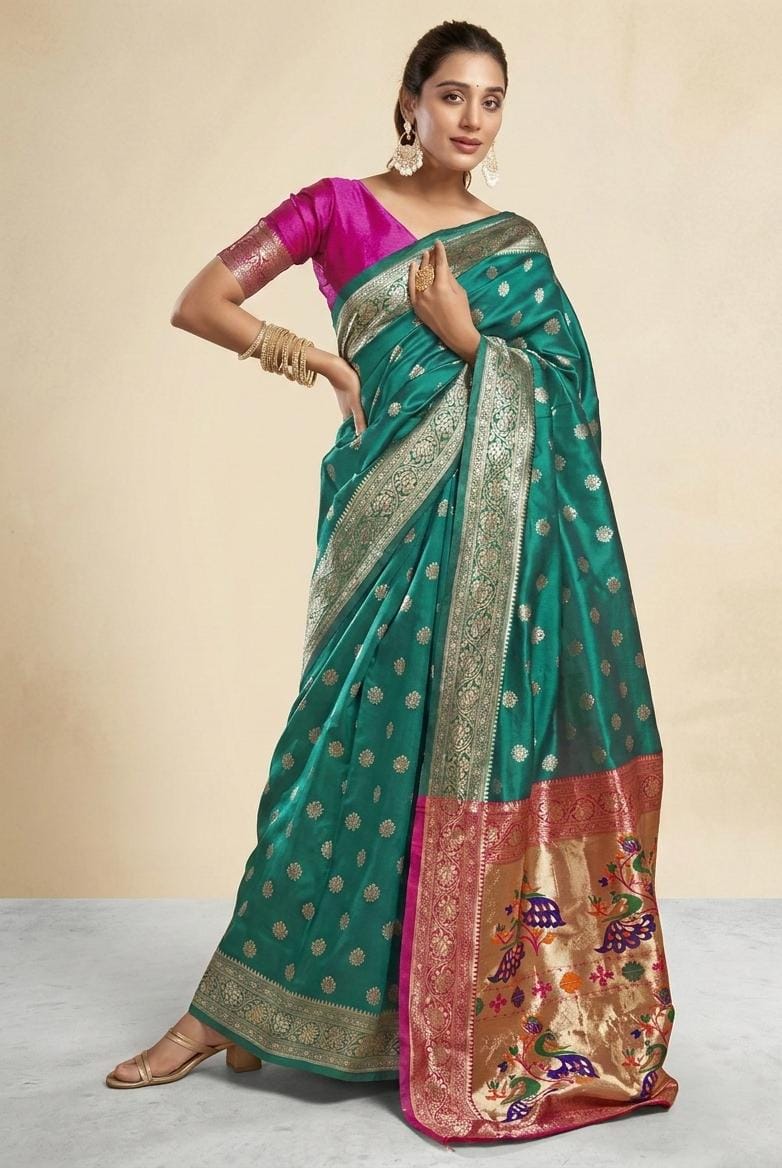 Zari woven art silk saree with matching Blouse TealBlue