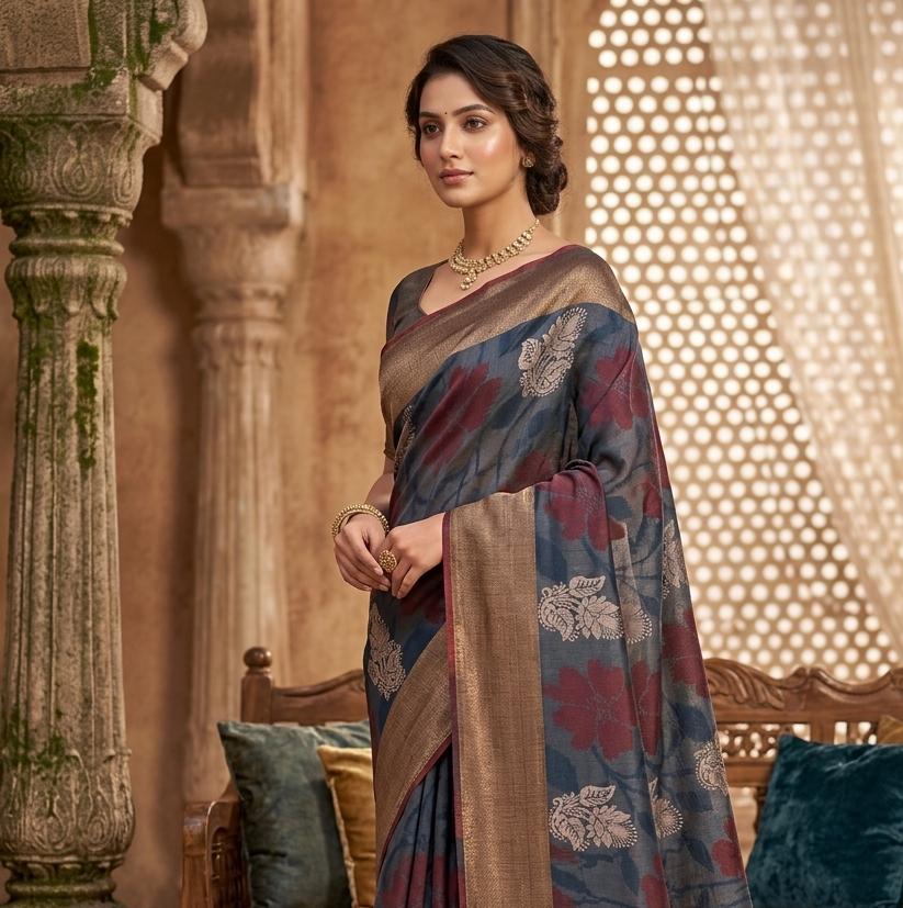 Do not hand wash and only dry-clean silk sarees. In case the saree gets stained, immediately wipe the stain off with cold water. Never hang a silk saree to dry in direct sunlight as doing so will cause the colour to fade.