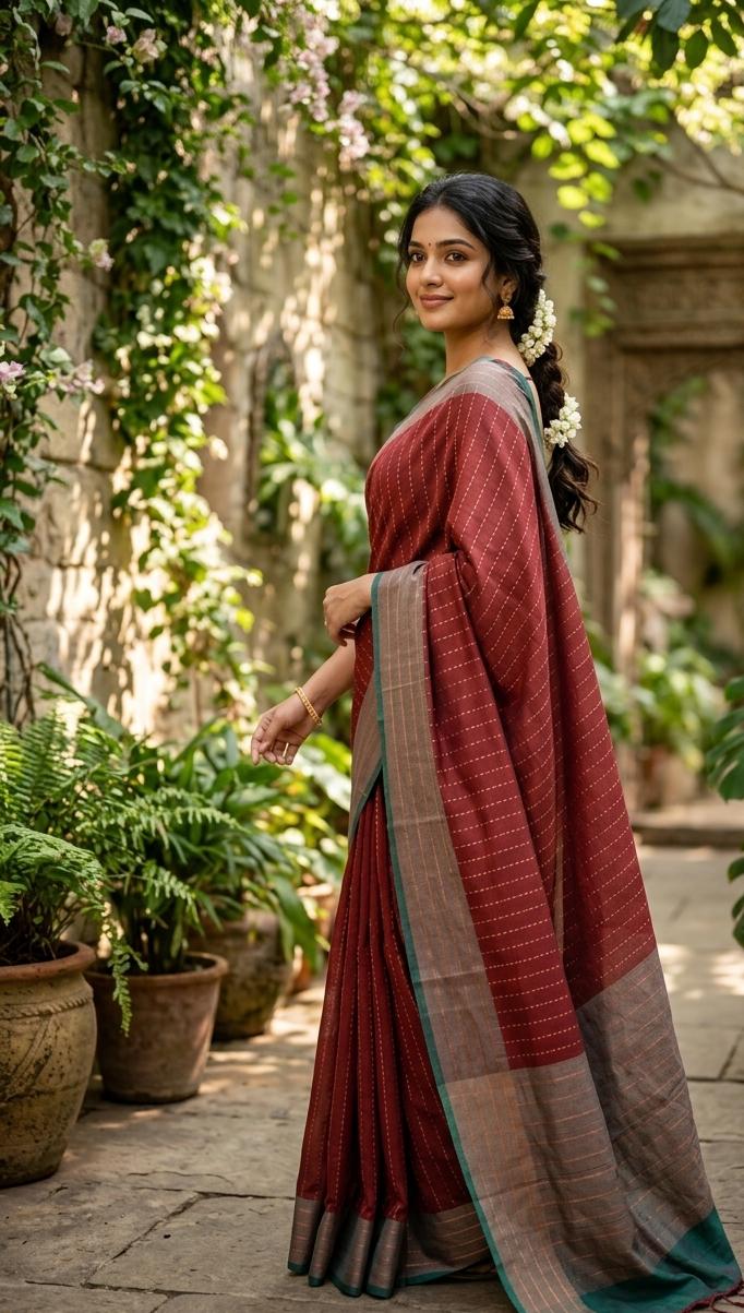 Zari woven stripe design soft silk saree Burnt Orange