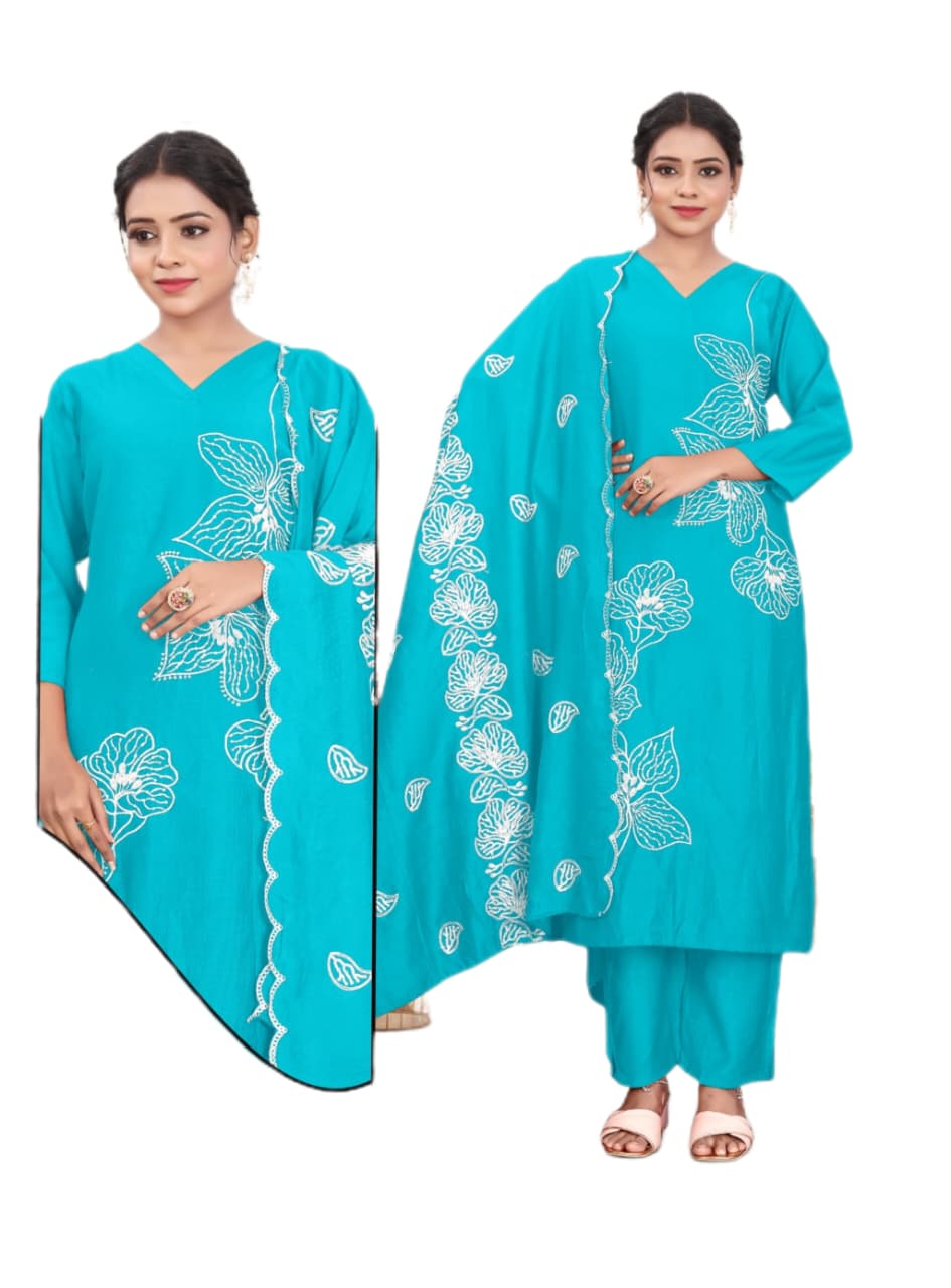 Vetican silk embroidered suit with embroidered duppatta Blue Size XXXL