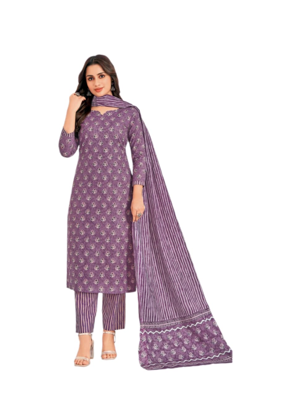 Pure Cotton printed Suit Lavender