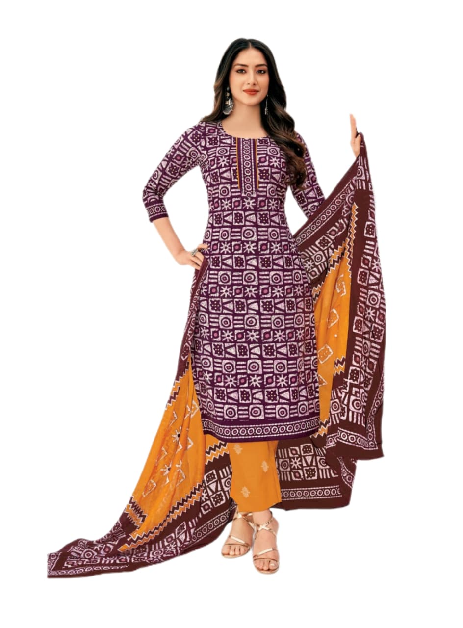 Pure cotton printed suit Wine Orange