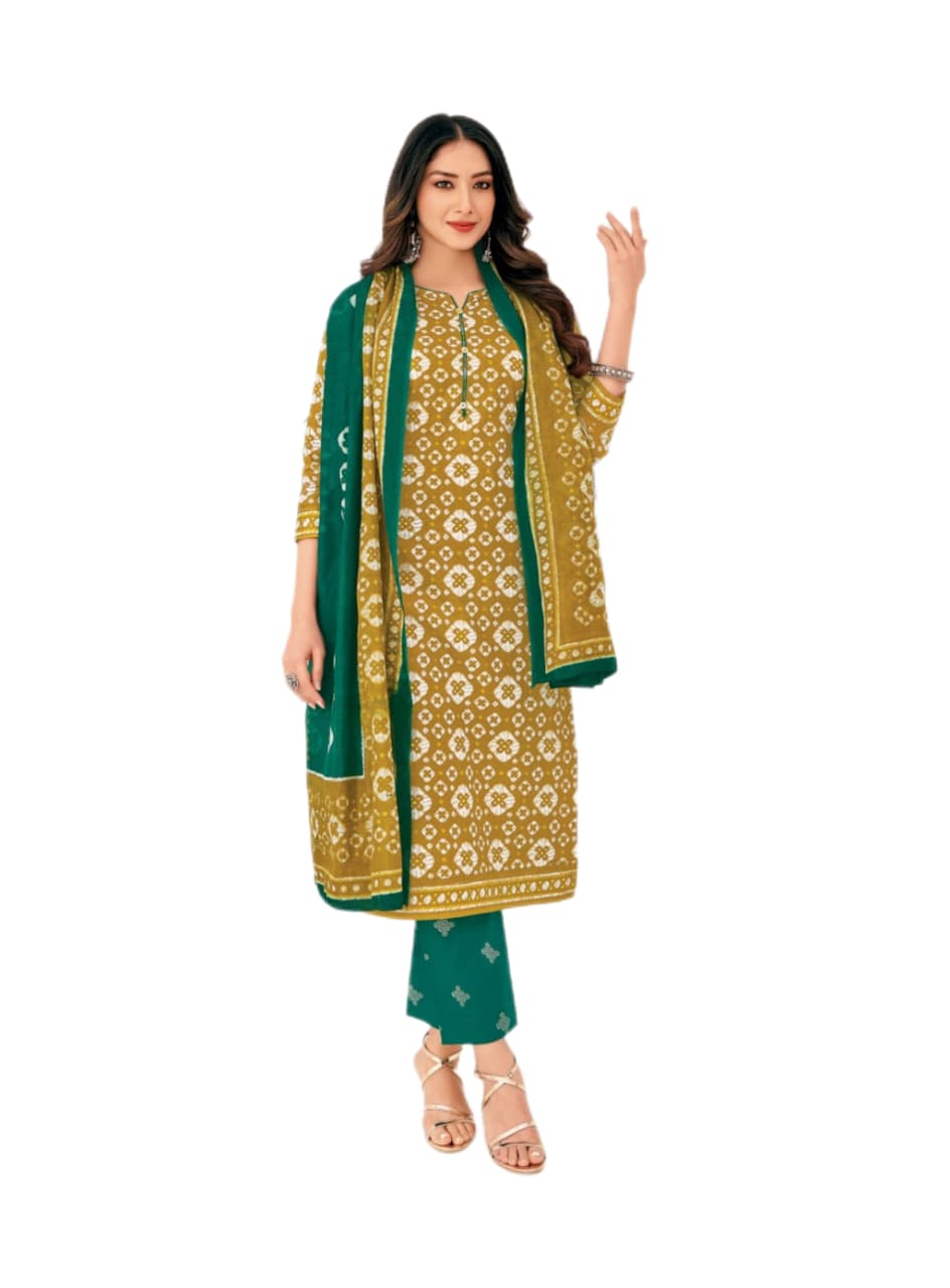 Pure cotton printed suit Mehendi Yellow Green