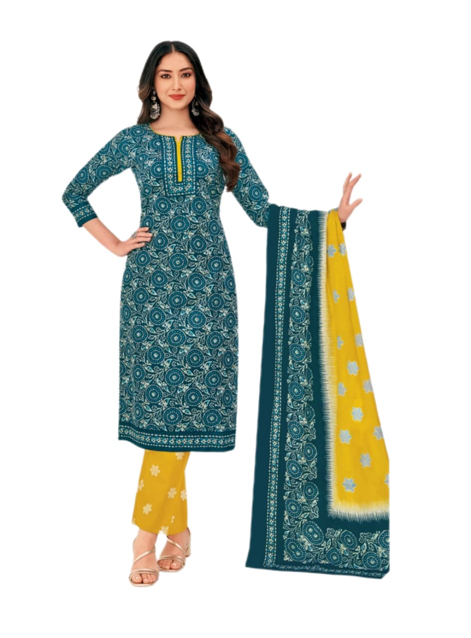 Pure cotton printed suit Blue and Mango Yellow