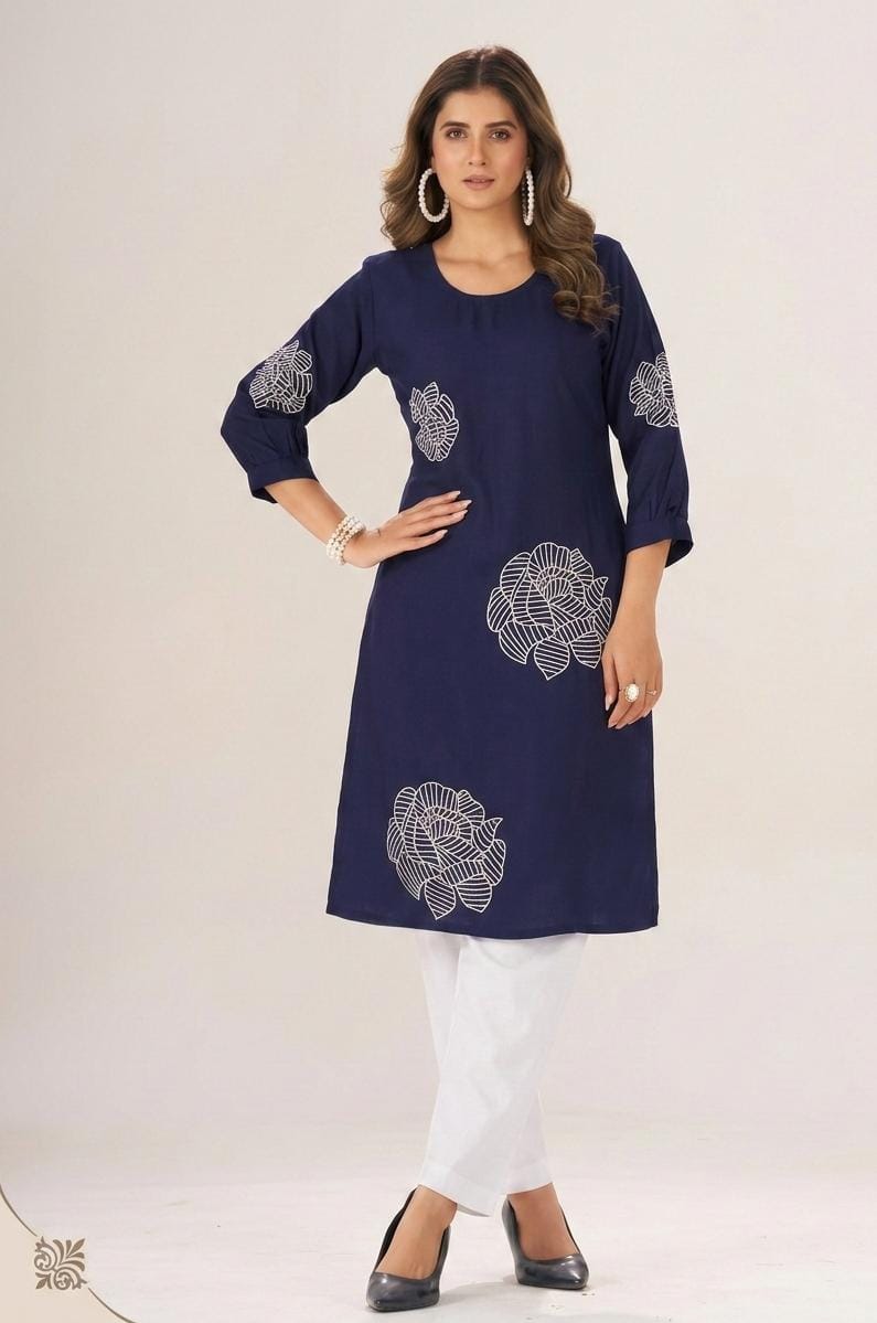 Embroidered rayon Kurta Size 3XL NavyBlue