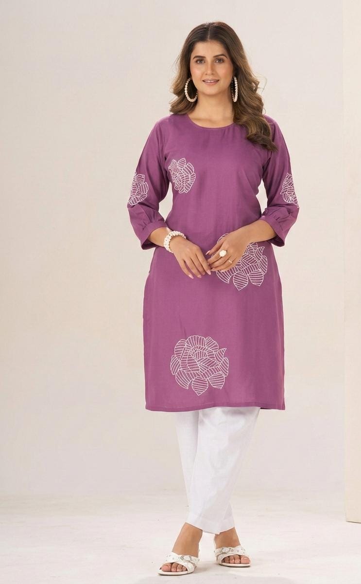 Embroidered rayon Kurta Size 3XL GrapeColour