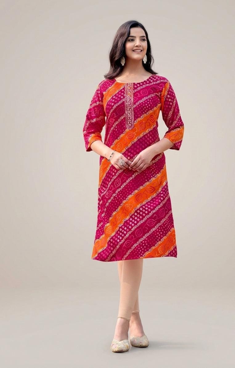 Foil printed Rayon Kurta Size 3XL YellowPink