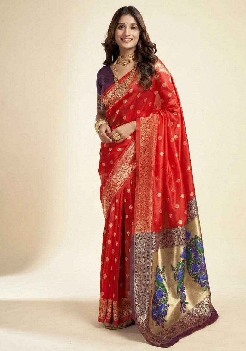 Do not hand wash and only dry-clean silk sarees. In case the saree gets stained, immediately wipe the stain off with cold water. Never hang a silk saree to dry in direct sunlight as doing so will cause the colour to fade.