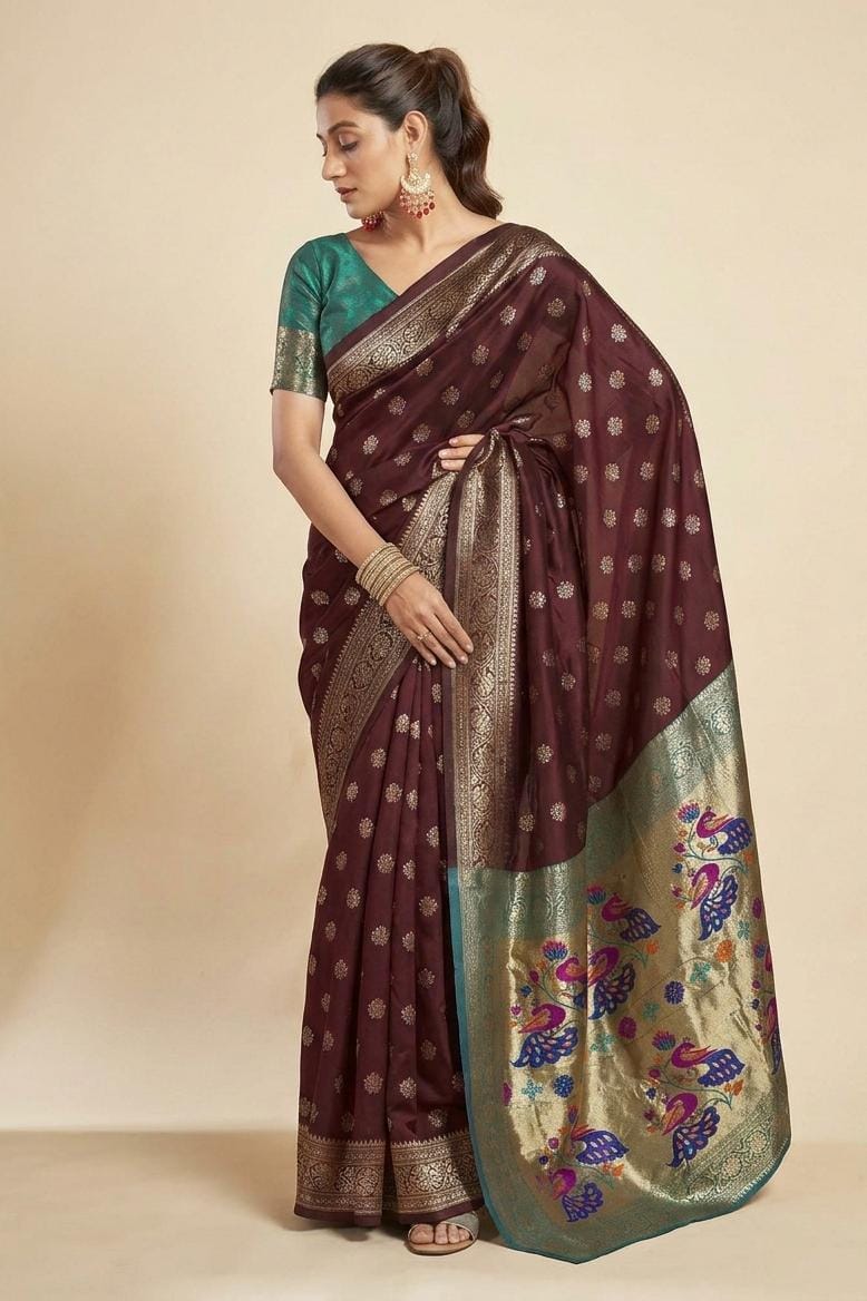 Do not hand wash and only dry-clean silk sarees. In case the saree gets stained, immediately wipe the stain off with cold water. Never hang a silk saree to dry in direct sunlight as doing so will cause the colour to fade.